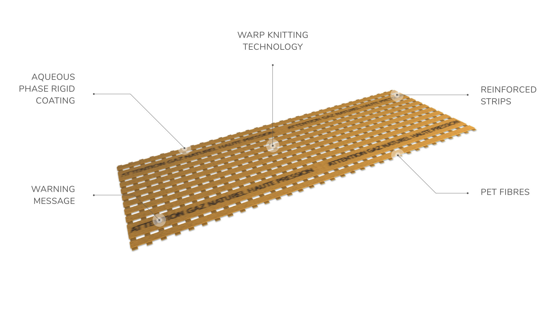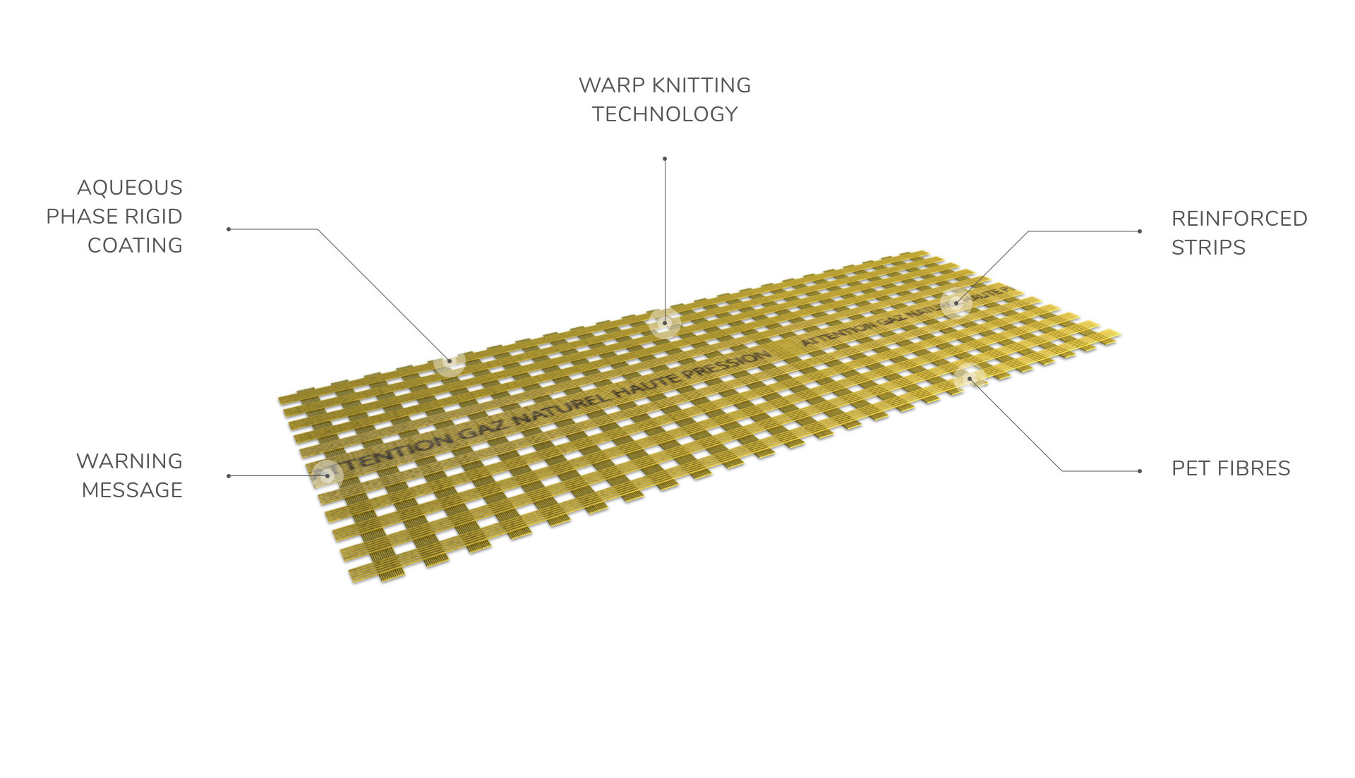 The OVERPIPE warning mesh with high mechanical resistance (GHRM) is considered a mechanical protection by French regulations (GESIP guide 2008/02).